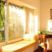 A three bedroom house surrounded by tall trees and filled with light, sunshine and colour.